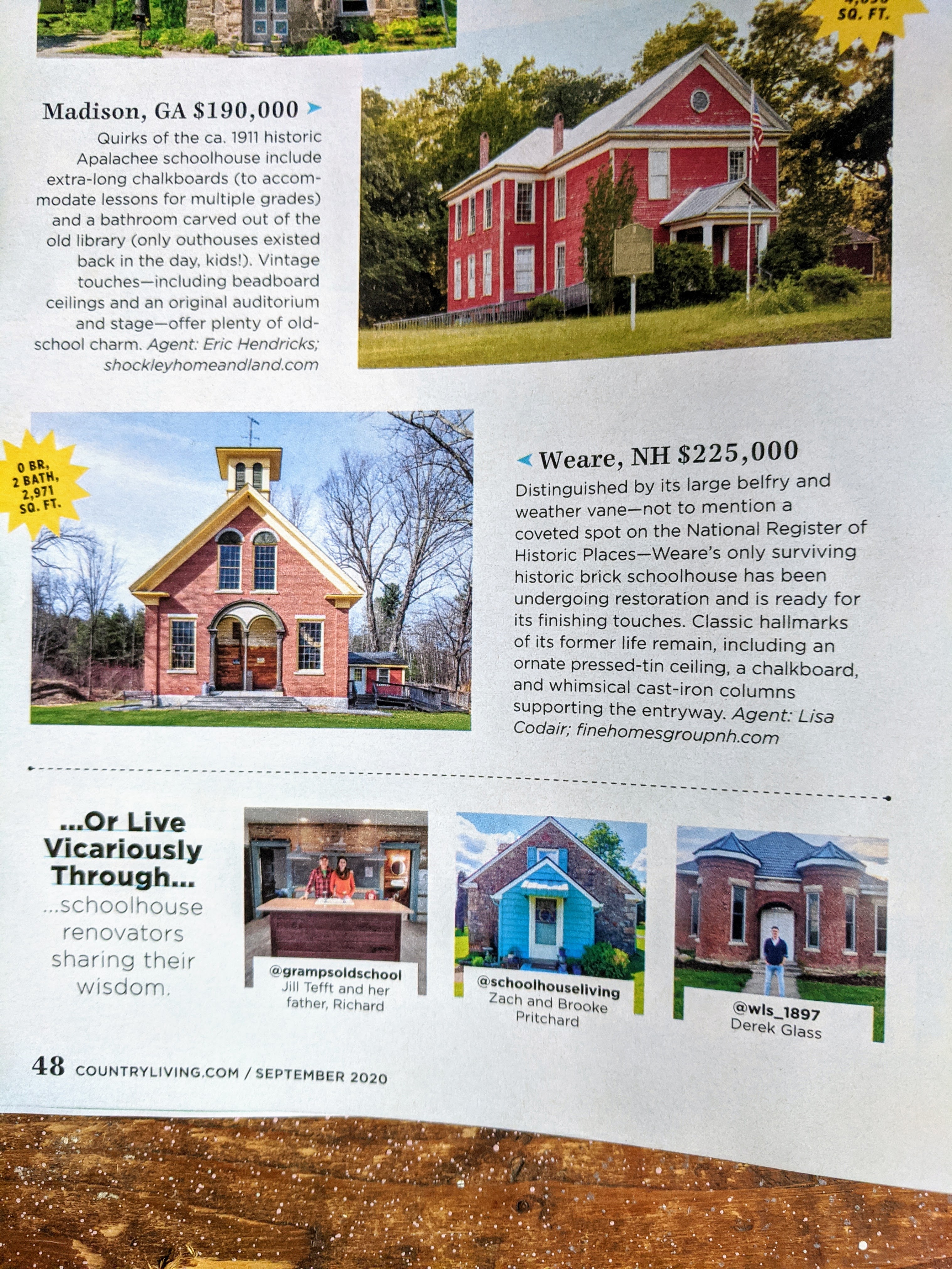 The schoolhouse Instagram account @grampsoldschool is featured in the September issue of Country Living Magazine! We were so thrilled to be listed along side some beautiful schoolhouses!