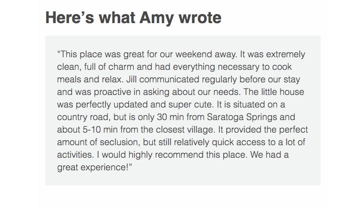 We receive one of our most flattering reviews! Seriously, we couldn’t have written it better ourselves! We also have a “guidebook” on Airbnb. This is like a virtual binder that lists favorite places to check-out in the area. We love sharing all the charms of Washington County with our guests, especially the ice cream shops! You can check out the guidebook here.